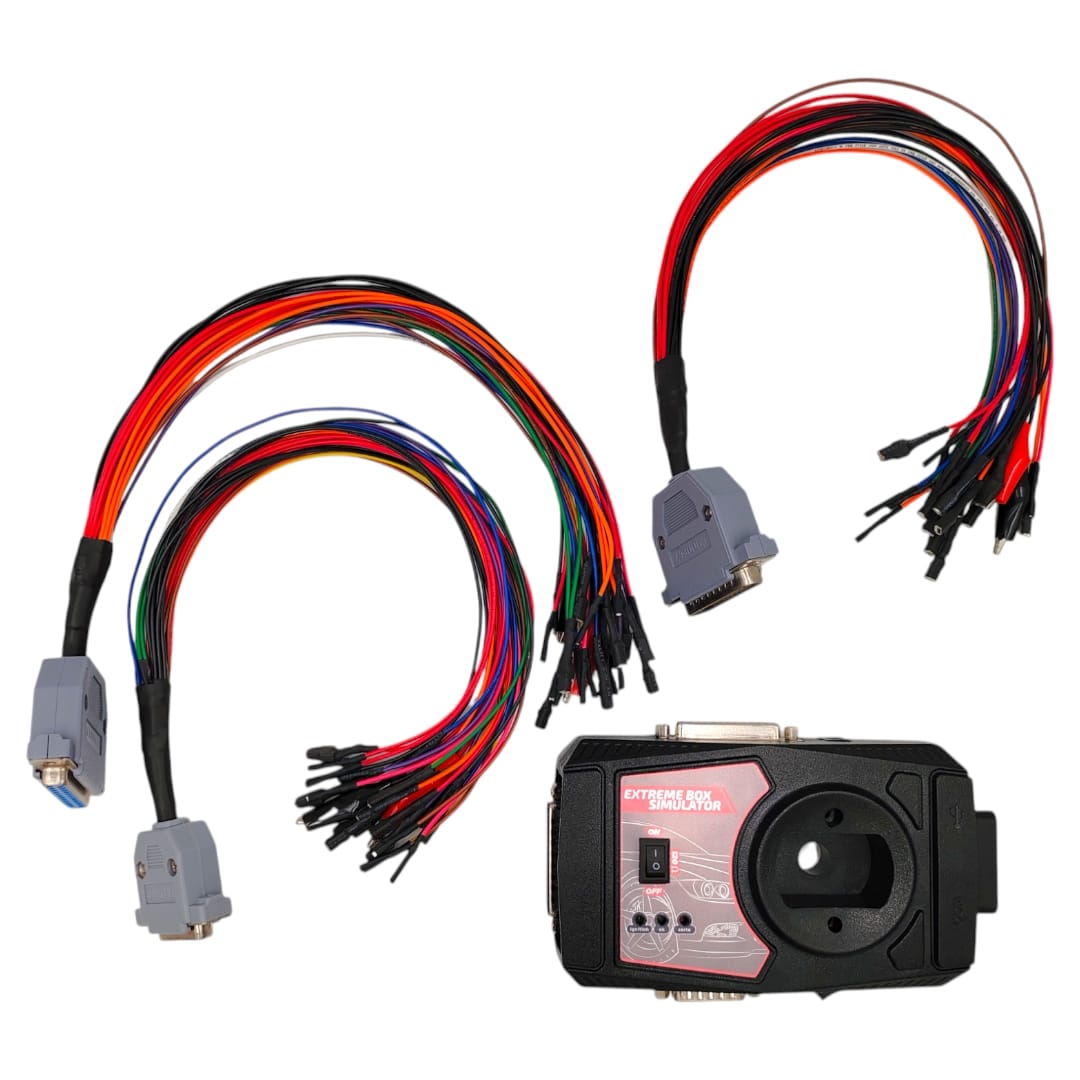 El Extreme Box Simulator Pro es un banco de pruebas profesional para programación automotriz, diseñado para simular la comunicación entre módulos electrónicos como si estuvieras conectado directamente al vehículo. Esta herramienta avanzada permite trabajar cómodamente desde el taller sin necesidad de estar físicamente dentro del automóvil, moto o camión.